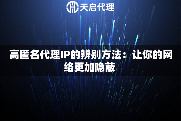 高匿名代理IP的辨別方法:讓你的網(wǎng)絡更加隱蔽