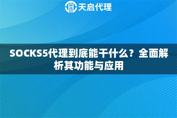 SOCKS5代理到底能干什么?全面解析其功能與應(yīng)用