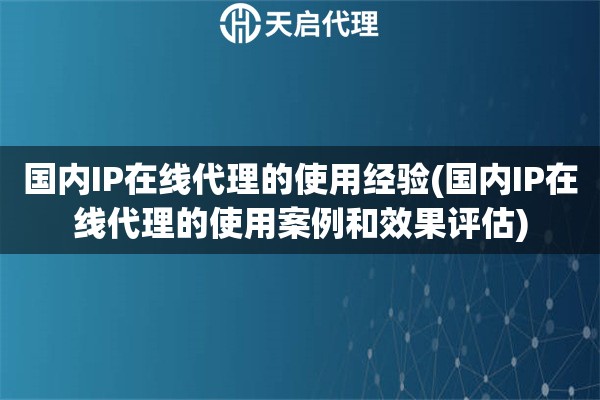 國(guó)內(nèi)IP在線代理的使用經(jīng)驗(yàn)(國(guó)內(nèi)IP在線代理的使用案例和效果評(píng)估)